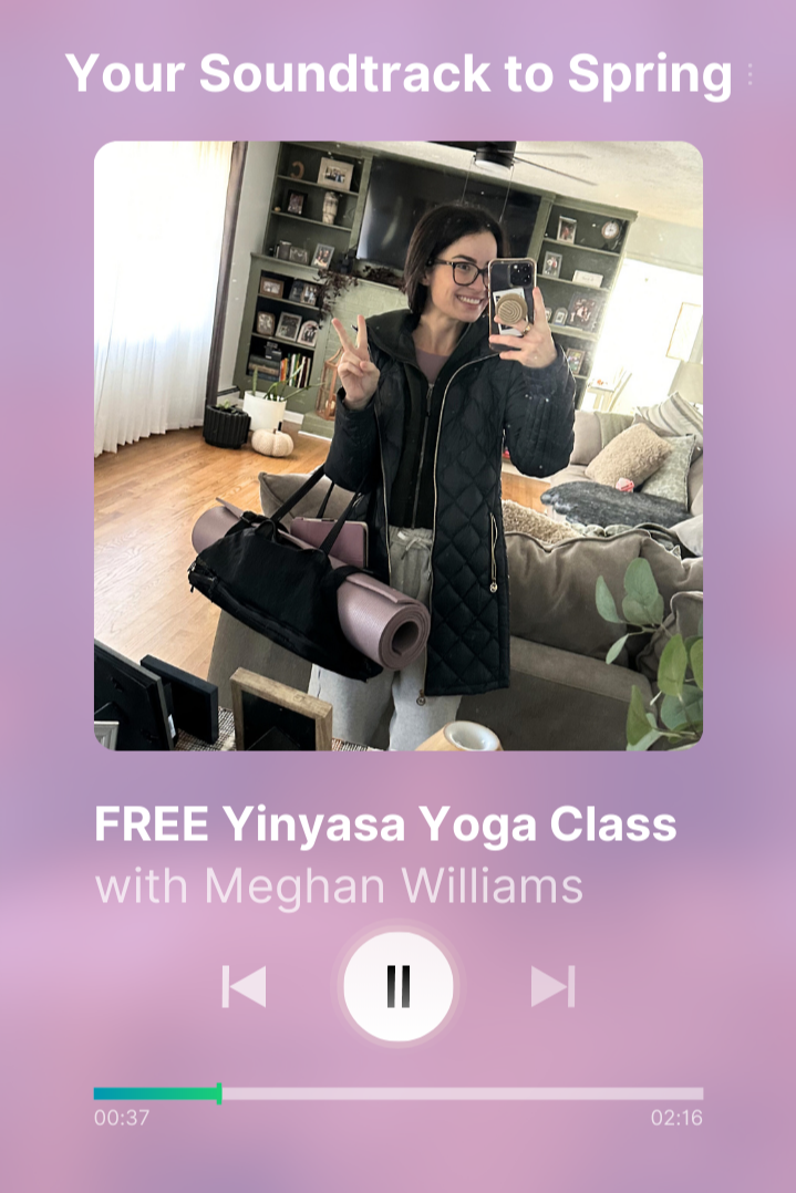 Join Meghan for a FREE hour of hand selected tunes and groovy springtime yoga flow on Saturday, Feb 28 from 9:45-10:45am!